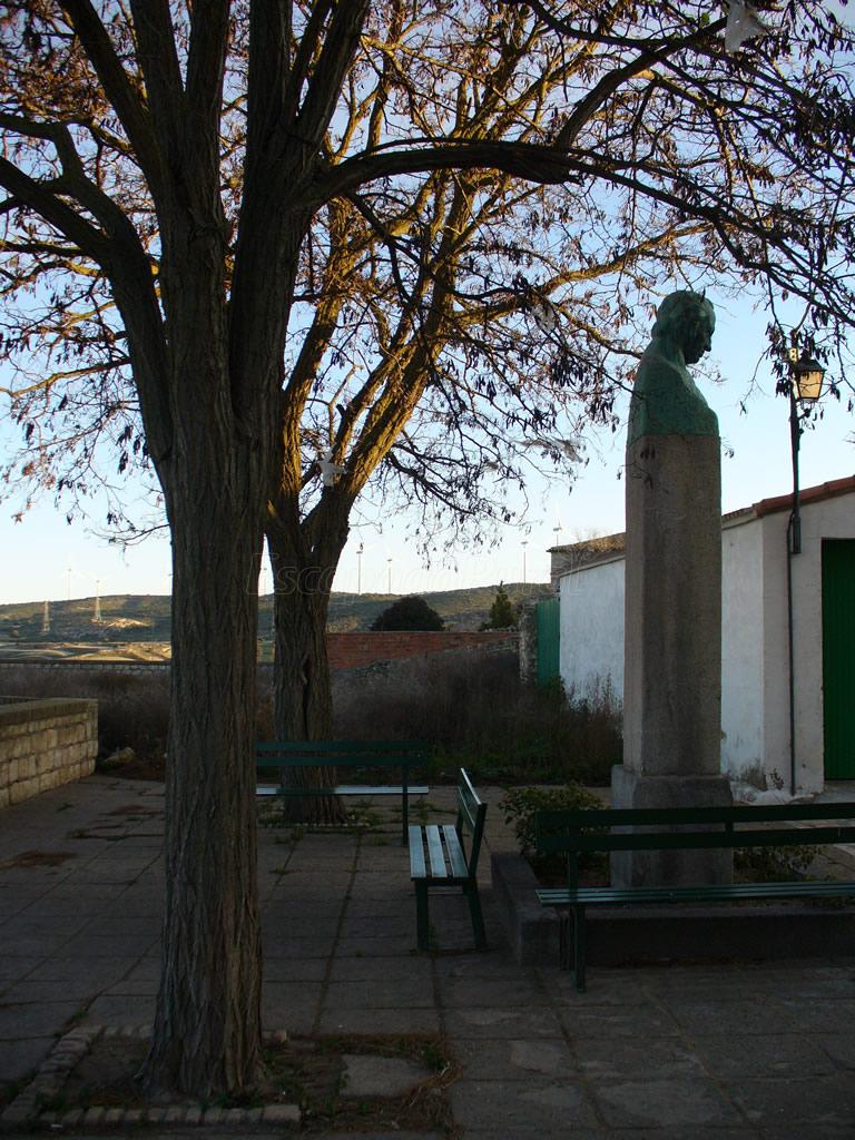 En la otra se encuentra un busto de Goya de bronce sobre un basamento de tres metros y medio de altura, de jaspe azulado sin pulir, extraido de las canteras de Codos. Este monumento fue proyectado en 1920 por Julio Antonio y pagado por Ignacio Zuloaga y sus amigos de Zaragoza. Debajo de la dedicatoria: A GOYA, pueden leerse estas palabras: Para que el espíritu del artista inmortal, que la gloria extendió por todo el mundo, vivan en el pueblo que le vio nacer. Y más abajo puede leerse: Erigen este monumento Ignacio Zuloaga y sus amigos. 19 de octubre de 1920. [Wikipedia]